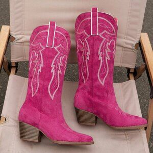 Hot Pink Western Women's Wedge Heel Embroidered Metallic Sequin High Boots