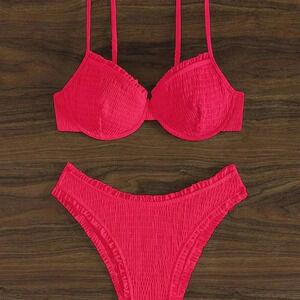 Hot Pink Women's Beach Bikini Set With U-Shaped Underwire
