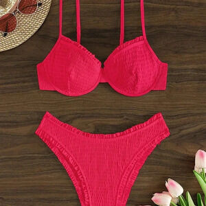 Hot Pink Women's Beach Bikini Set With U-Shaped Underwire