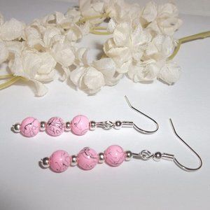 Hot Pink and Silver Beaded Dangle Earrings Set Fashion Accessory Gift Idea 6905