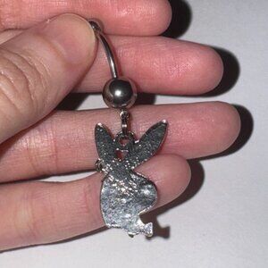 Dangle belly rings shaped like a Playboy bunny. Belly rings are 14 gauge and made out of 316-l surgical steel. I attach each belly ring with a split ring so the charms are more secure. If you want your top gem to match the bottom gem then feel free to look for the listing for the 5 mm round rhinestone 14 gauge balls and purchase a colored ball so it matches.