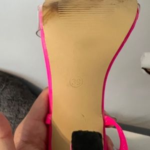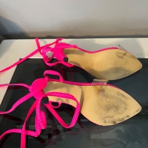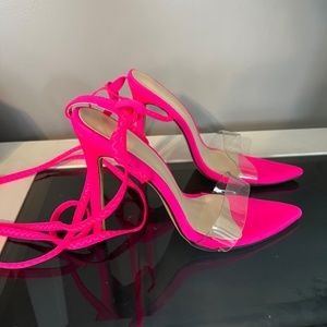 Hot Pink clear toe strap tie up high heels