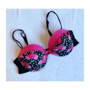 Hot Pink/Black Ruffled Padded Bra - Sz 36D