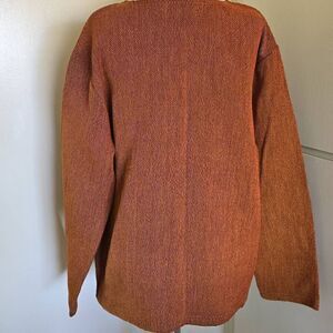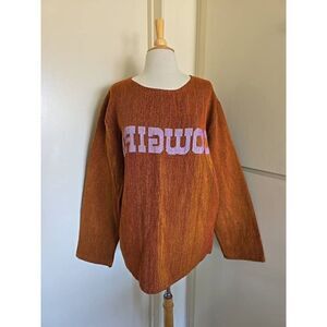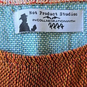 Hot Product Studios in Collaboration with 7777, Reverse Cowgirl Oversized Long Sleeve Top, Cotton Tapestry in Black/Gold/Orange, reverse is bright turquoise.