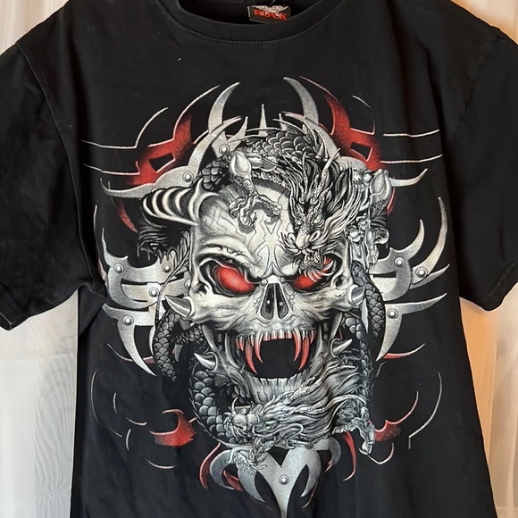 Hot Rock Skull and metal Graphic TEE Men’s Medium Front and back Print