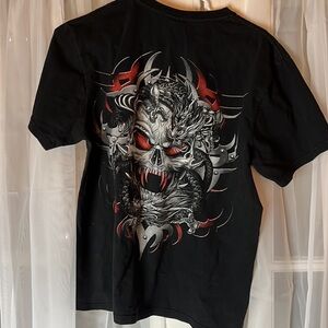 Hot Rock Skull and metal Graphic TEE Men’s Medium Front and back Print Good Used Condition Minor Wear Please See Pics For Condition