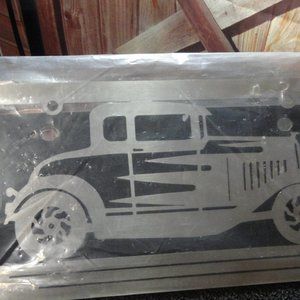 Hot Rod Old Car Metal cut out License plate frame, NIP has black back or…