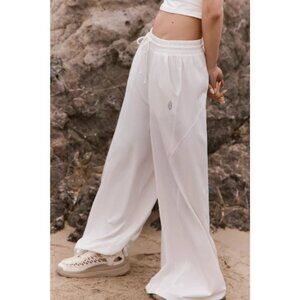 Just as effortless as it is essential, this set is easy to throw on before or after workouts, featuring a super soft fabrication with a strapless, cropped top and coordinating high-rise, wide-leg pants for the perfect done-in-one look.