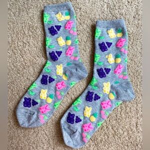 Hot Sox Crew Socks 2 Pairs Gummy Bears and Bananas Grey/Pink Size 4-10.5, NWOT