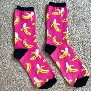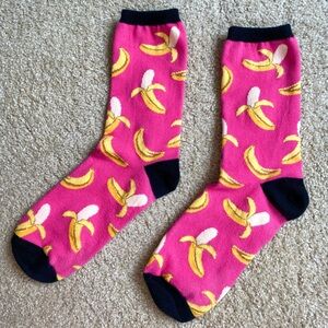 •Crew socks featuring gummy bear and fruit print, and banana print.