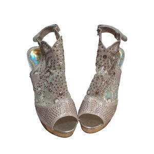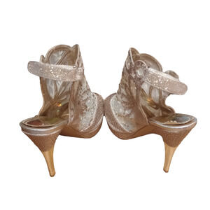 Hot Tomato Rhinestones Sequins Open Toe Ankle Strap High Heel Pumps 3" 9M Gold