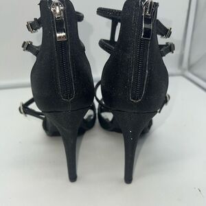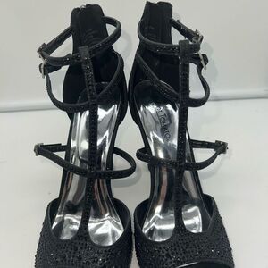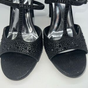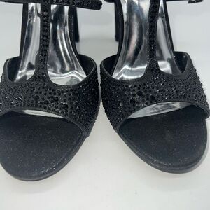 Hot Tomato Strappy Black Crystal Heels WIDE WIDTH