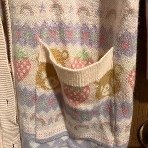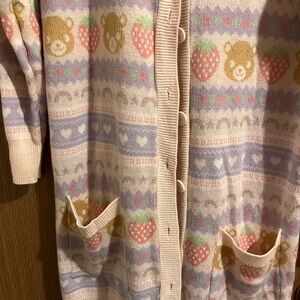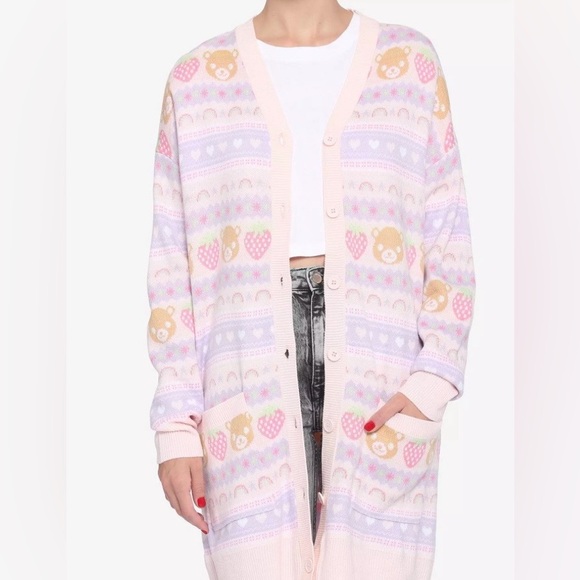 Hot Topic Pastel Teddy Bear & Strawberries Girls Oversized Cardigan