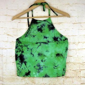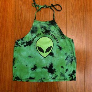 Hot Topic Alien Tie-Dye Halter Top Womens M Green Allergic To Humans Rave Kawaii
