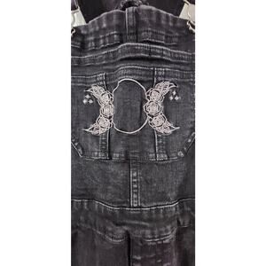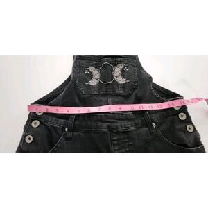 Hot Topic Bib Overalls Womens Small Black Denim 4 Moon Embroidery - Emo Goth