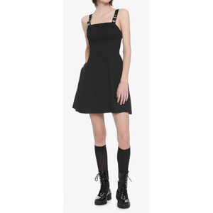 Hot Topic Black Buckle Strap Pinafore Dress - Size S