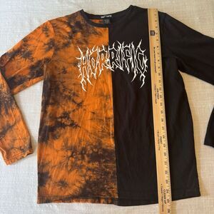 Hot Topic Black & Orange Horrific Split Wash Long-Sleeve T-Shirt Adult Small