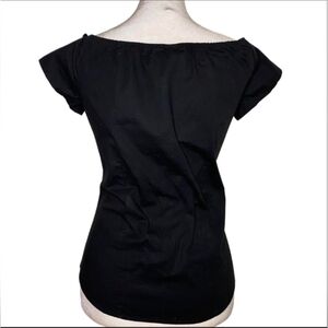 The Hot Topic black blouse features charming puff sleeves with a cap length, offering a stylish and modern look. Its ruffled design adds a touch of elegance, making it perfect for both casual and semi-formal occasions. Crafted with precision, this blouse is a must-have for any fashion-forward wardrobe.