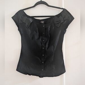 Hot Topic Black Puff Sleeve Ruffled Blouse