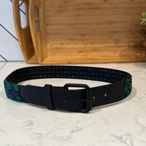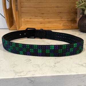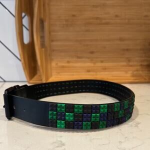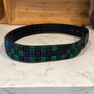 Hot Topic Black Purple Green Three Row Pyramid Stud Belt grunge rocker emo