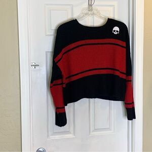 Hot Topic Black & Red Stripe Skull Crop Sweater Size 1X