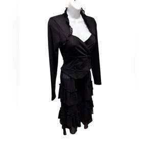 Hot Topic Black Sweetheart Double-Breasted Long Tiered Ruffle Jacket Sz S SteamPunk