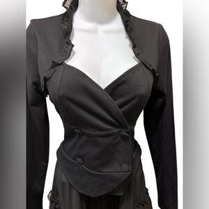 Hot Topic Black Sweetheart Double-Breasted Tiered Ruffle Jacket S Steampunk Goth