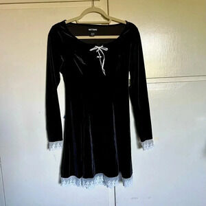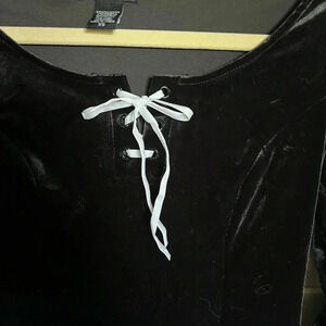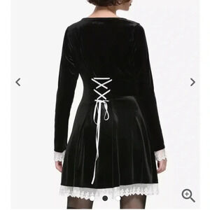 Hot Topic Black Whimsigoth Long-Sleeved Lace Trim & Velvet Lace-Up Dress