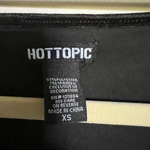 This isn't your ordinary little black dress, this is the little black dress' awesome Gothic sister. Her deets include; princess seams, and contrasting white lace trim on the cuffs and hems, with white velvet ribbon lacing on the neckline and in the back of the waist.