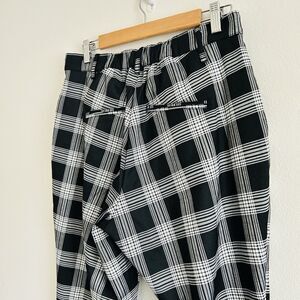 Hot topic black and white plaid trousers. Features high waist, elastic waist, and tapered straight legs.
