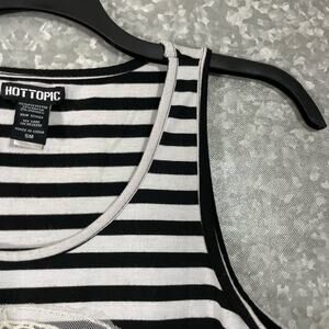 Hot Topic Black & White Striped Lace Sugar Skull Tank Top - Size Small - Hi-Low