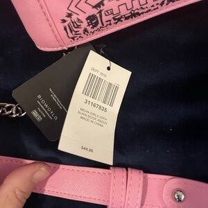 Celebrate the 20th anniversary of Mean Girls with this crossbody bag shaped like the iconic Burn Book! Feel like you're part of the Plastics whenever you wear it. It has a magnetic flap closure and lipstick marks on the back, the cover of the Burn Book on the front, and "On Wednesdays We Wear Pink" on the inside front. Silver-tone hardware. Completely SOLD OUT at Hot topic in stores and online!!!! Rare Find!