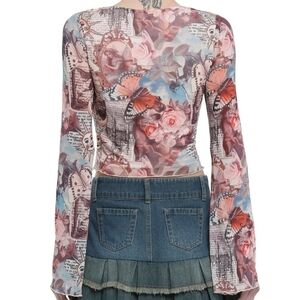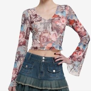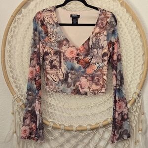 Hot Topic Butterfly Celestial Fairycore Fairy Floral Boho Bell Sleeve Sheer Top