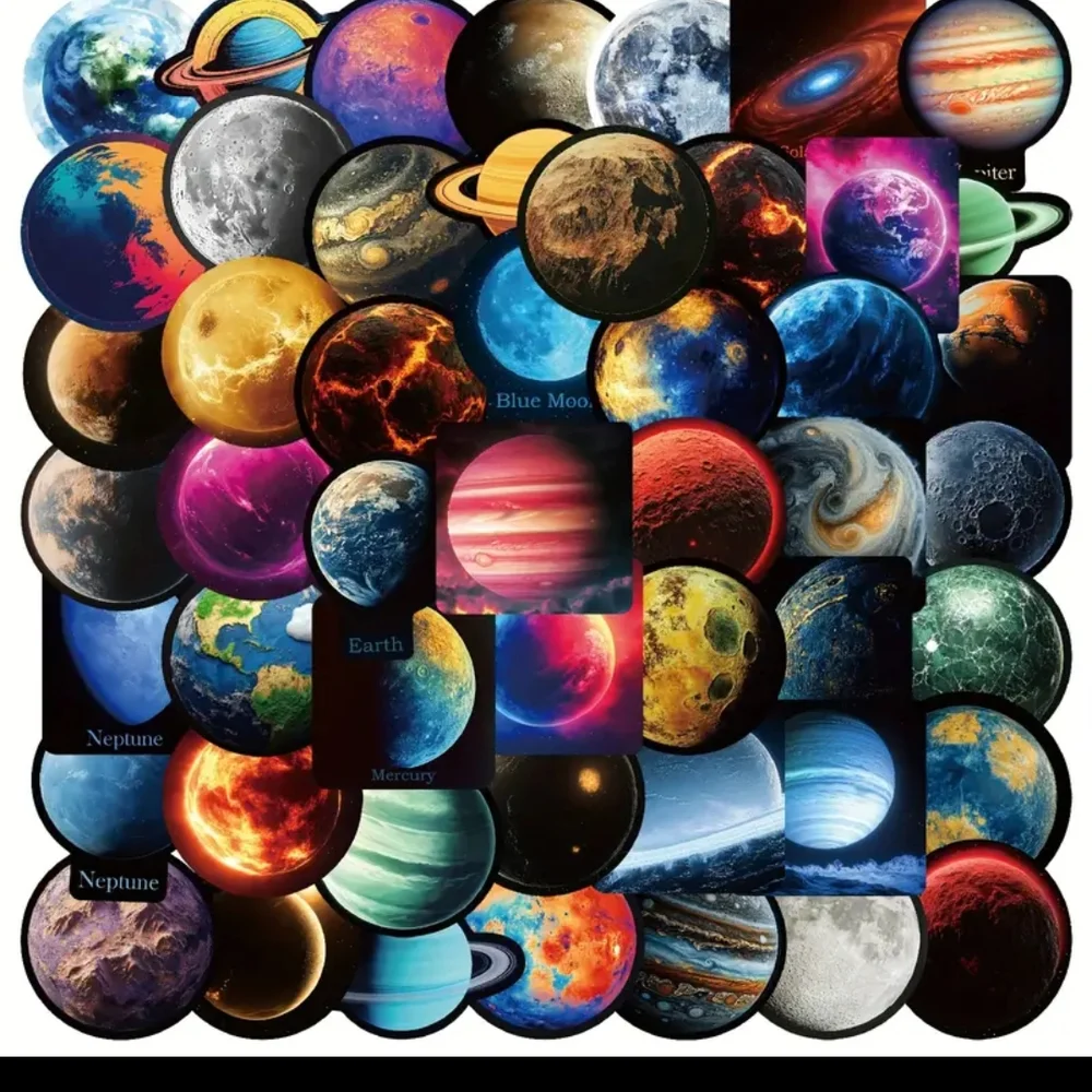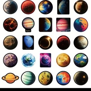 Dive into space with this stunning planet sticker set. Perfect for cosmic decor.25 pack