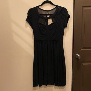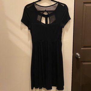 Hot Topic Black Cutout "T" Neckline Dress with Cutout Mesh Panels on Back and Pockets.
