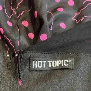 Hot Topic Dress Kitty Cat Retro Pinup Polka Dot Black Pink 50s Rockabilly MEDIUM