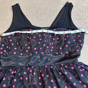 Hot Topic Kitty Cat Dress Polka Dot Retro Pinup Rockabilly MEDIUM #DL1225 Black Pink Childless Cat Lady Novelty Print 50s Vintage-Inspired Atomic Mid-Century Fit & Flare Tulle Satin Mesh