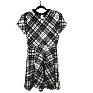 Hot Topic Dress Size Medium White Black Plaid Peter Pan Collar Academia Wednesday