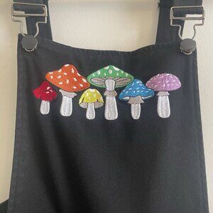 Hot Topic Dress Skirtall Black Embroidered Rainbow Mushroom Goth Medium Overalls