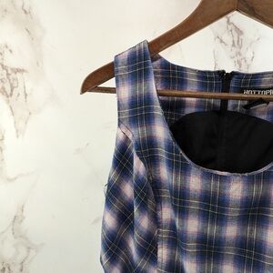 Hot Topic Dress Womens Medium Purple Plaid Cutout Skater Tank Mini Grunge Y2K