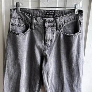 Hot Topic Flame Straight Leg Denim Pants Gray Black