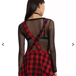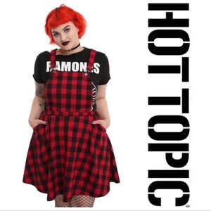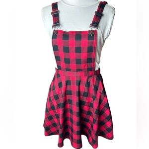 Hot Topic Flannel Plaid Skirted Overall Dress Size Small red black schoolgirl