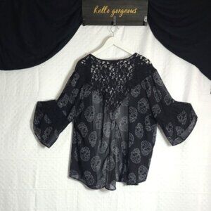 Hot Topic Gothic Shear over shirt w/ Black & white Skulls Women's XL