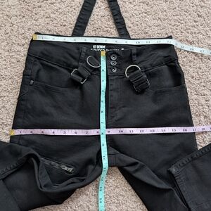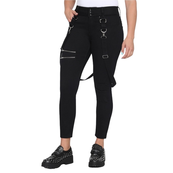 hot topic jeans, ht denim jeans, black skinny jeans, super skinny jeans, suspender jeans, detachable suspenders jeans, womens skinny jeans, size 5 jeans, high rise skinny jeans, black denim pants, alternative fashion jeans, edgy womens jeans, punk style jeans, goth look jeans, zipper detail jeans, womens black pants, fitted skinny jeans, casual streetwear jeans, statement denim women, everyday black jeans, resale fashion denim, pre owned jeans women, skinny fit pants women, five pocket jeans, womens fashion resale, versatile black denim, edgy casual jeans, alternative style clothing, womens denim pants, trendy skinny jeans, black jeans outfit, womens casual