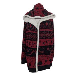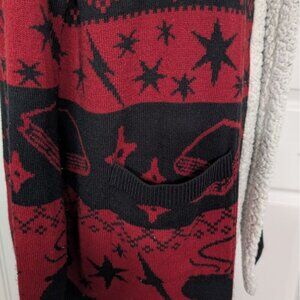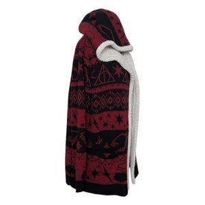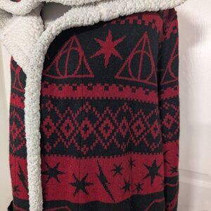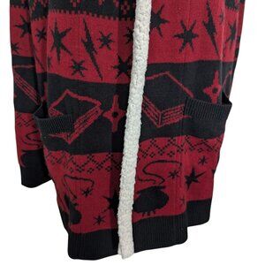 Hot Topic Harry Potter Deathly Hallows Sherpa Cardigan Size Medium Red Hooded
