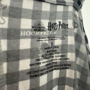 Stretchy jersey knit Harry Potter patterned gingham dress from Hot Topic. A slightly loose fitting bottom, but a bit more bodycon through the middle. A-line fit.
