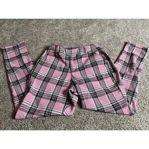 Hot Topic High Rise Skinny Pants JR Size SMALL Pink Black Plaid Tapered