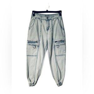 Hot Topic Women’s Indigo Denim Side Chain Jogger Jeans Size 5 Acid Wash Hip Hop Grunge