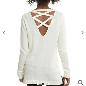 Hot Topic Ivory Cream Lace-Up Criss Cross Back Life Is Music Sweater Size Medium