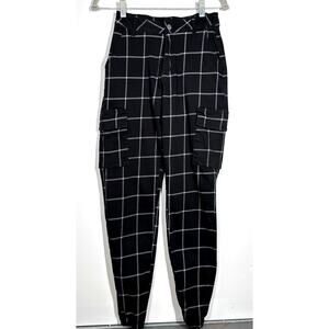 Hot Topic Jogger Cargo Pants Black White Gothic Casual Preppy Women Size XS (PS)